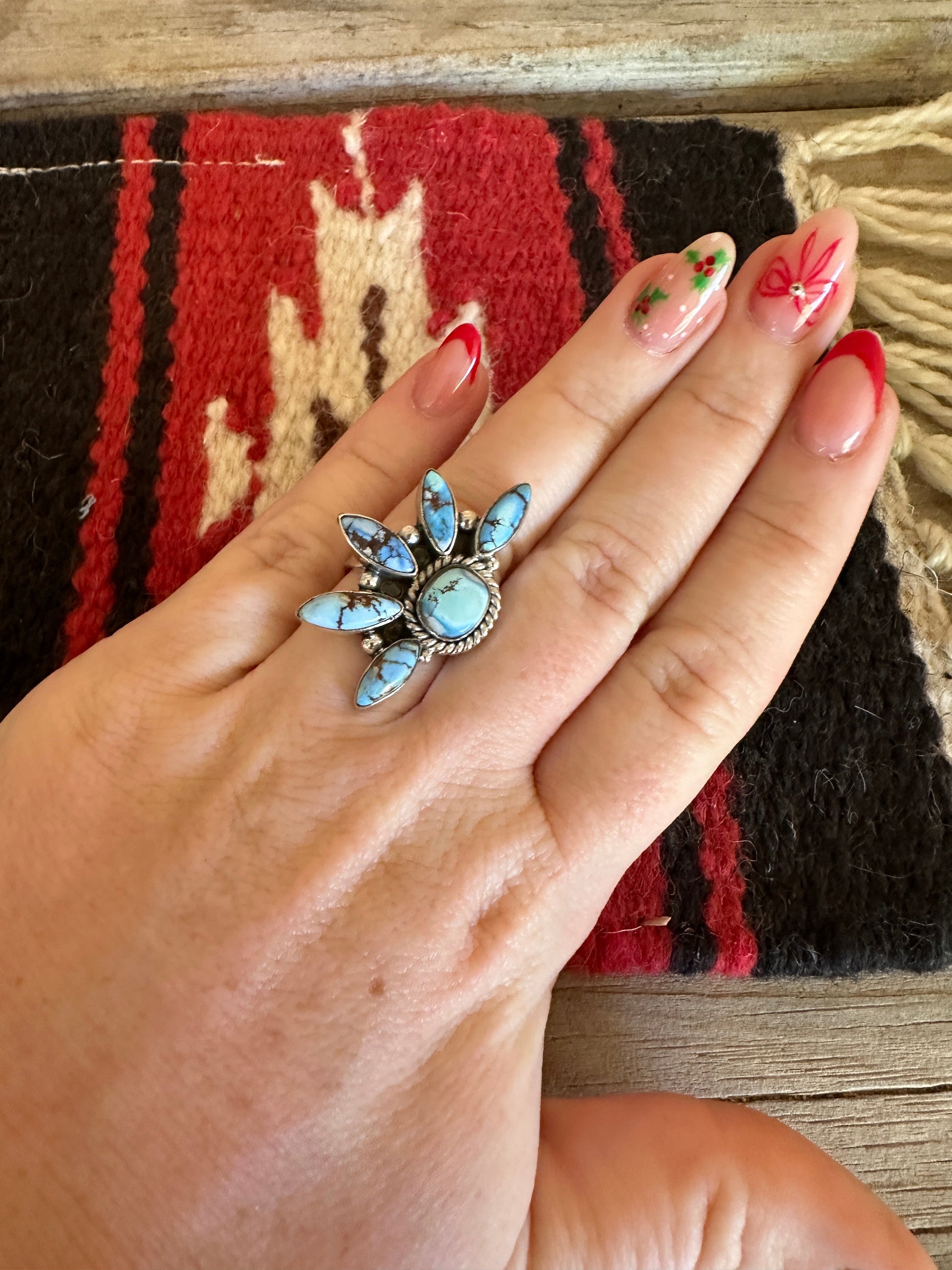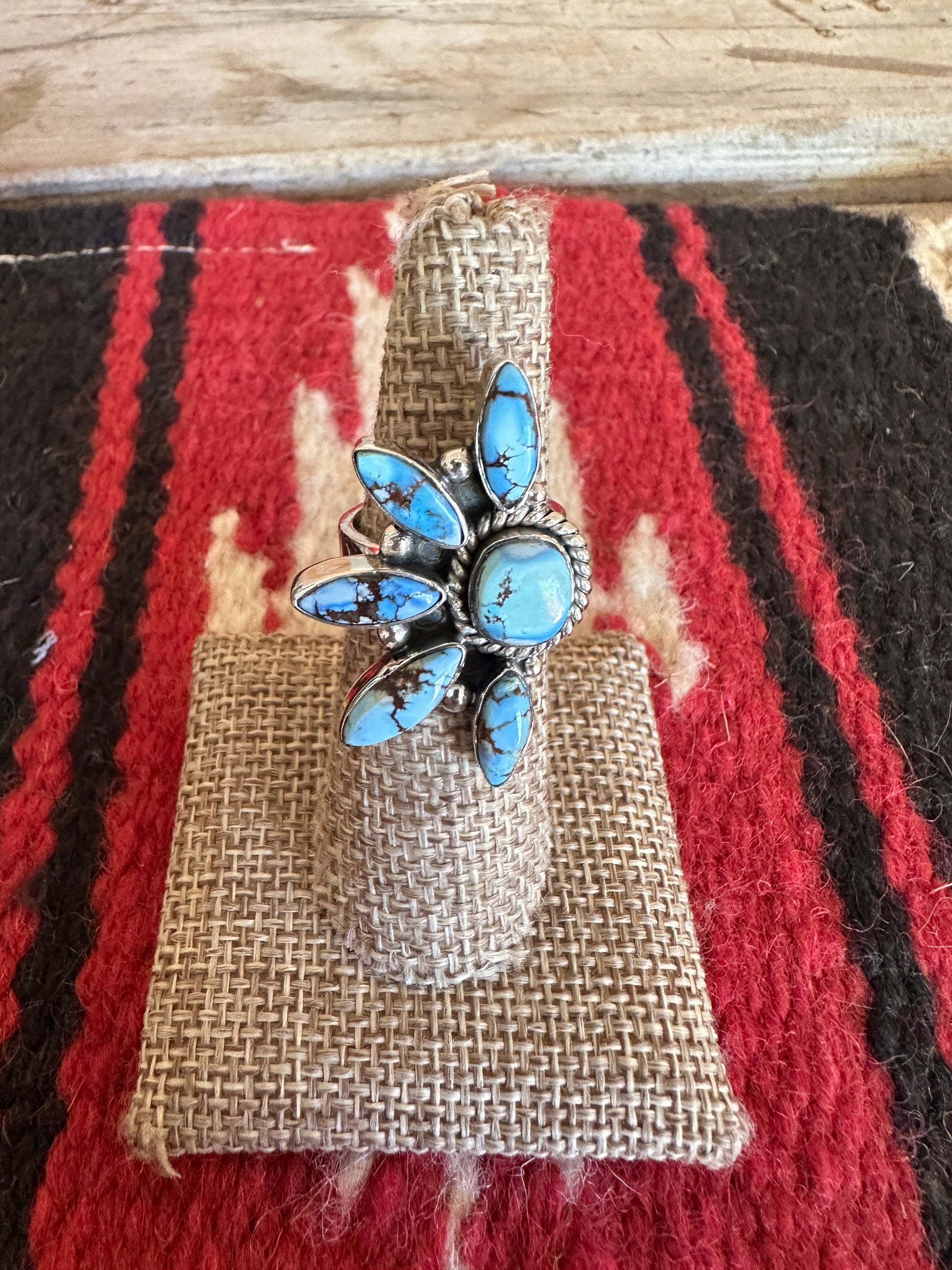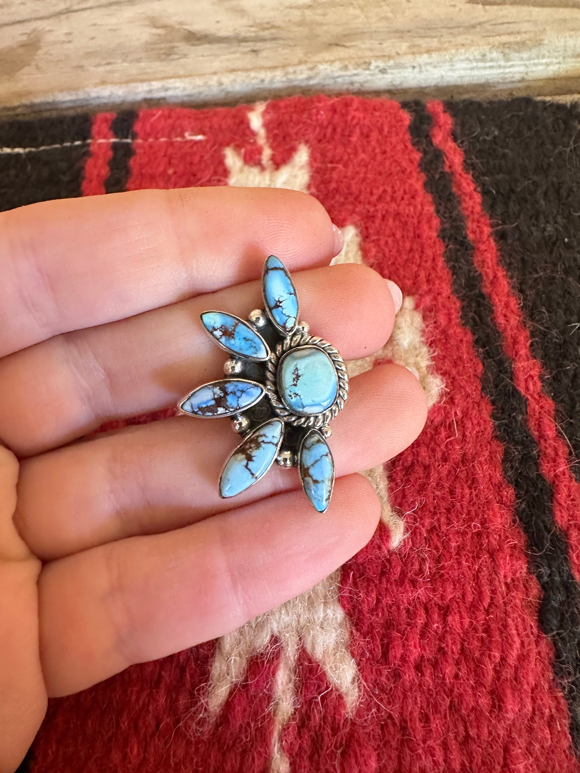 Beautiful Handmade Golden Hills Turquoise And Sterling Silver Adjustable Cluster Crescent Ring