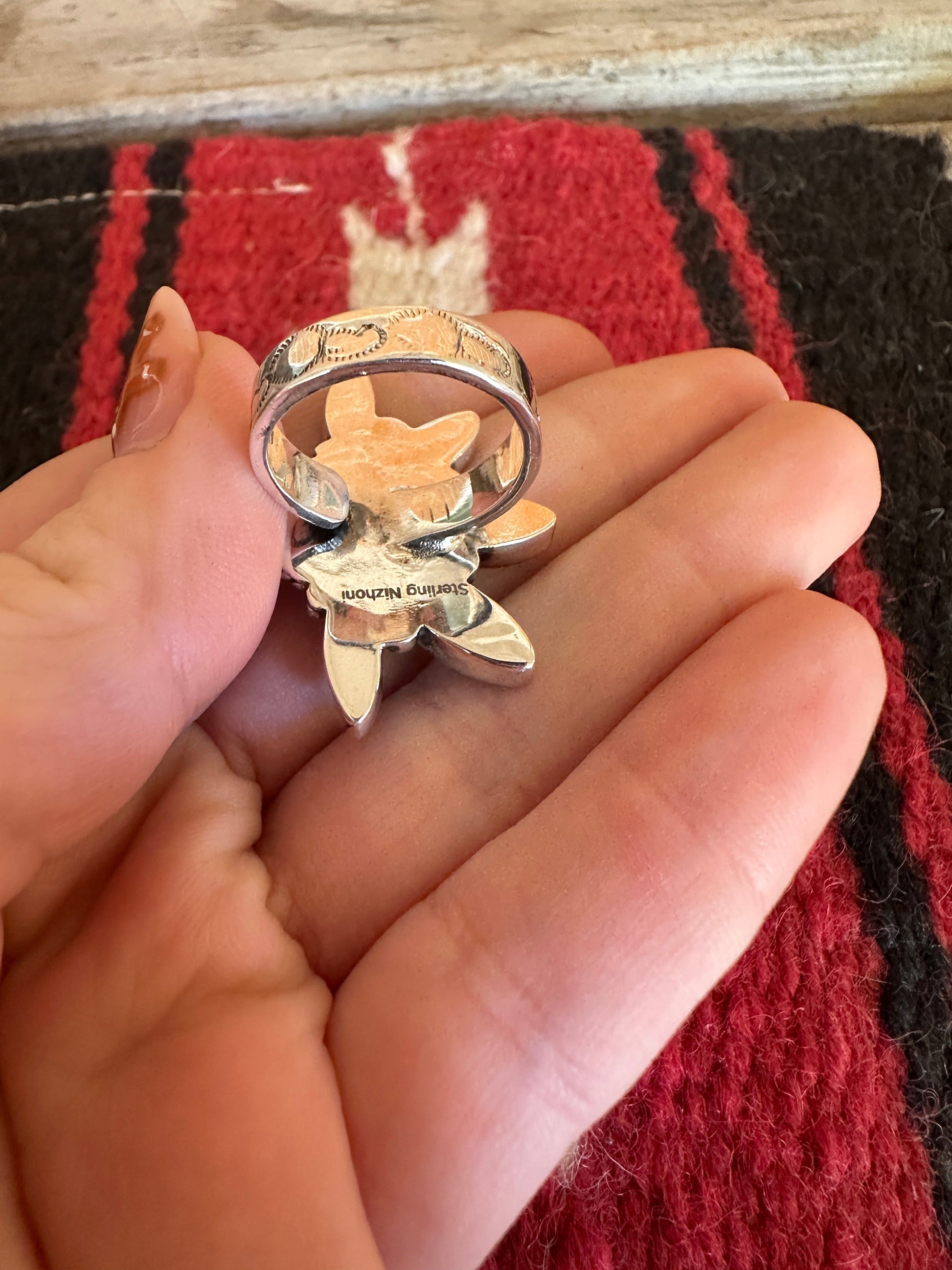 Signed Nizhoni and stamped Sterling.