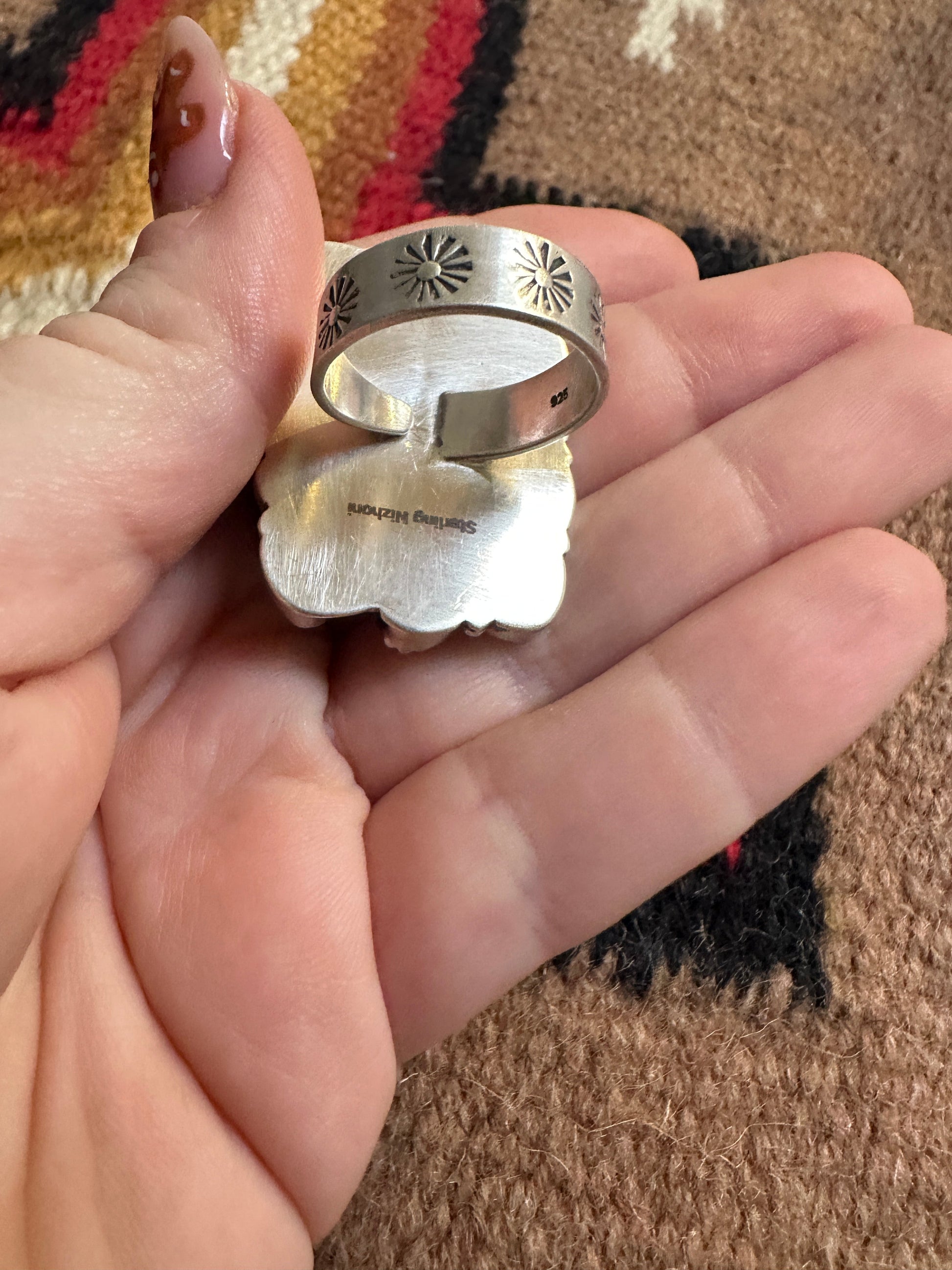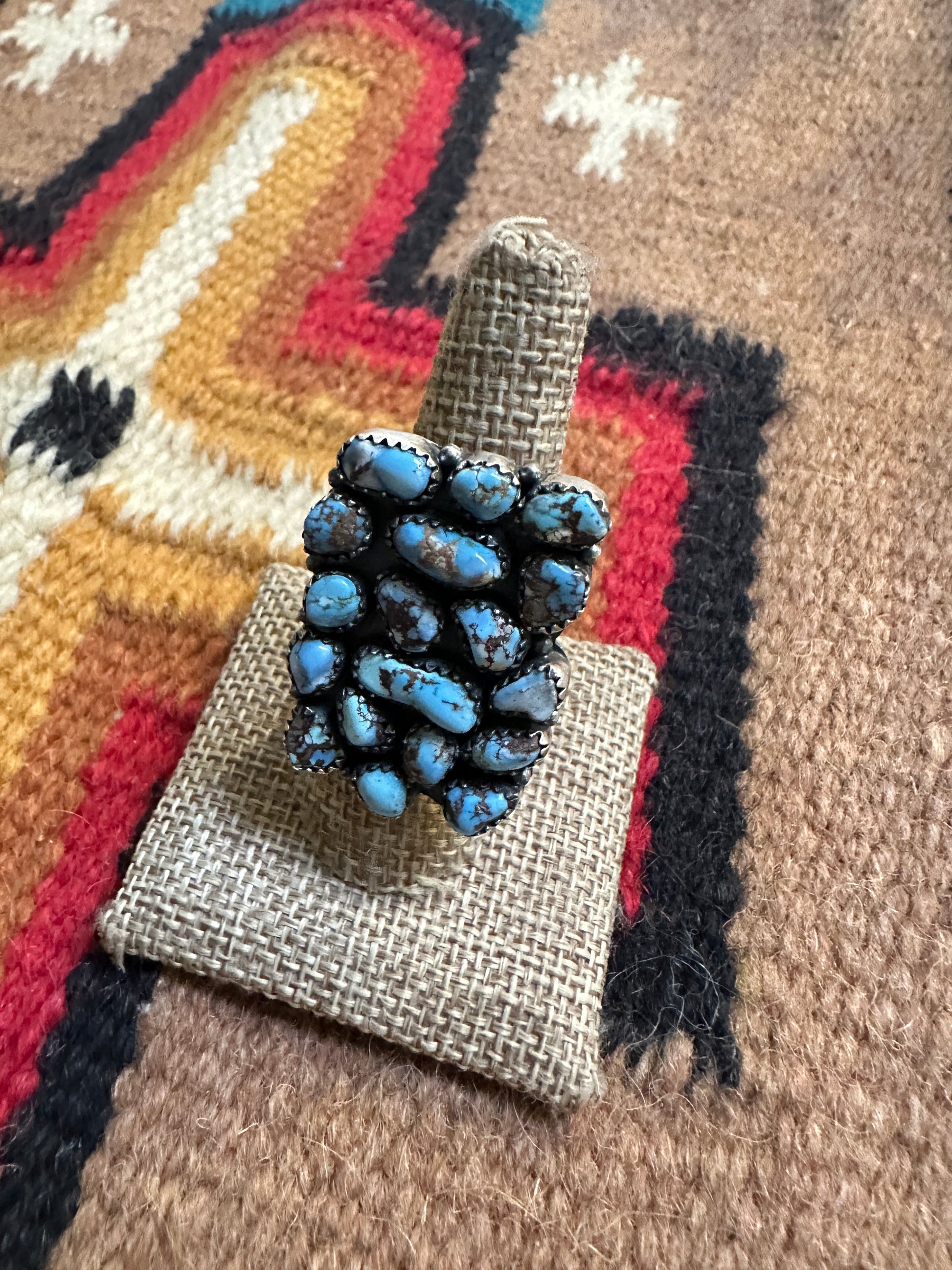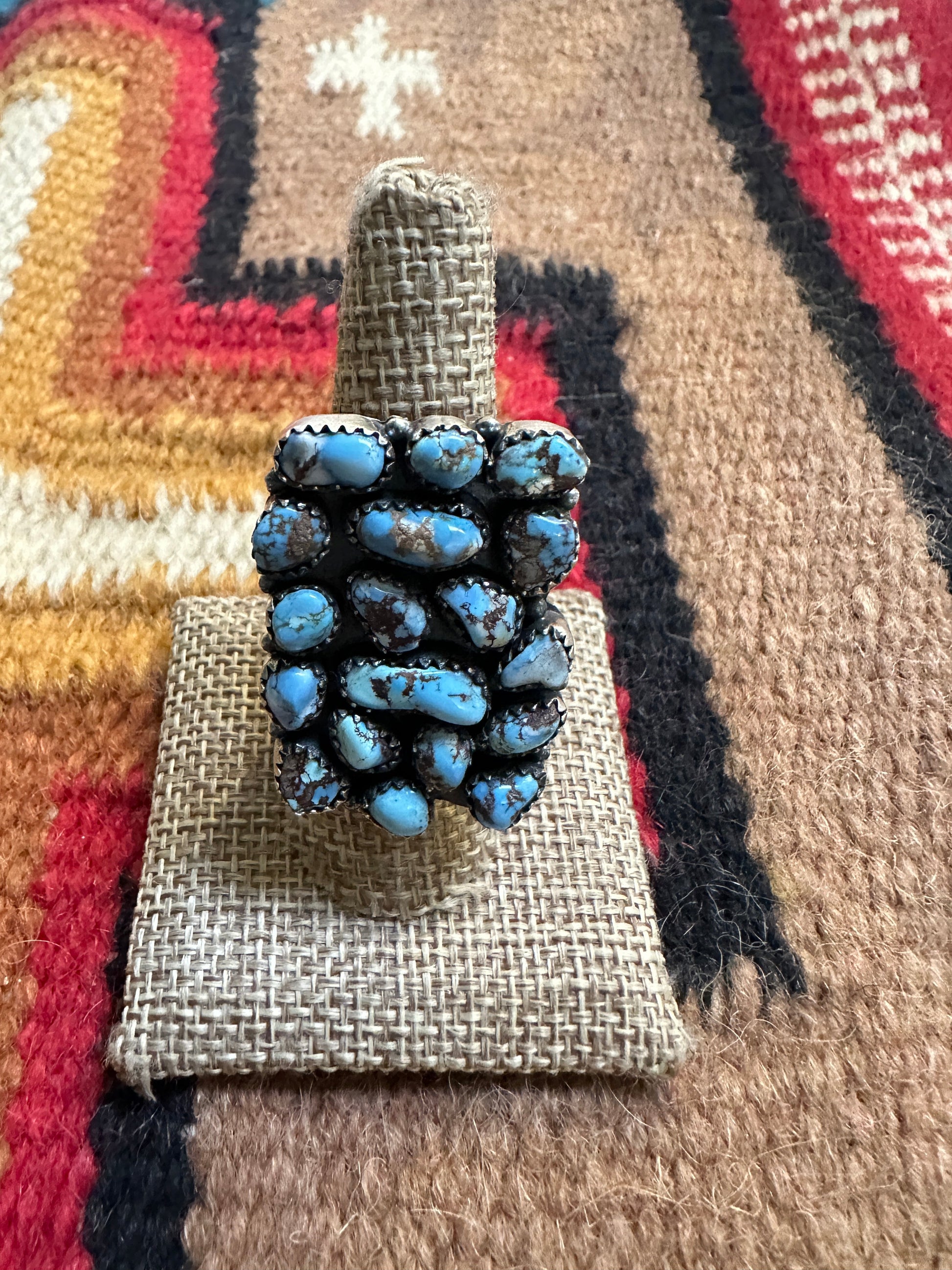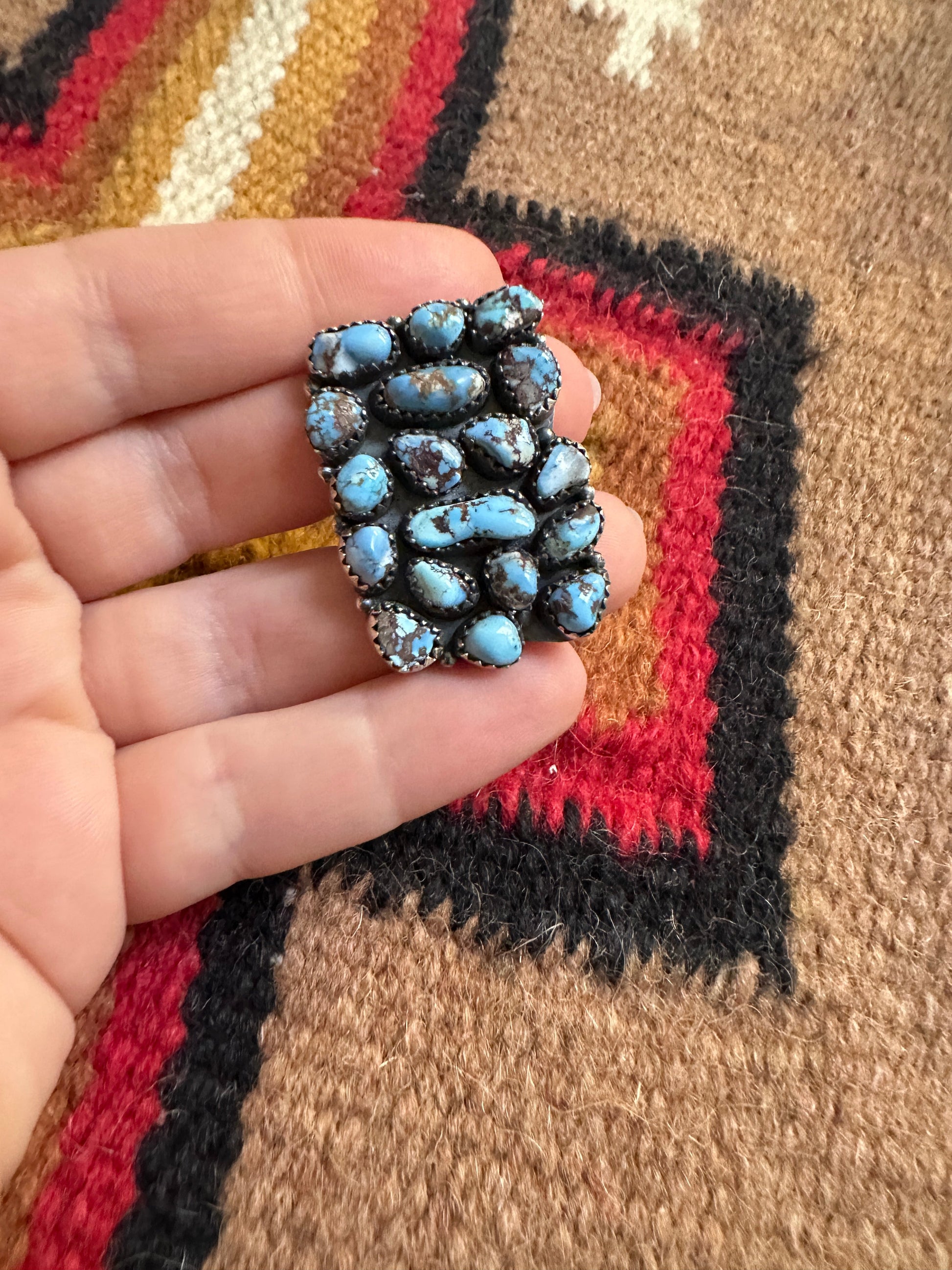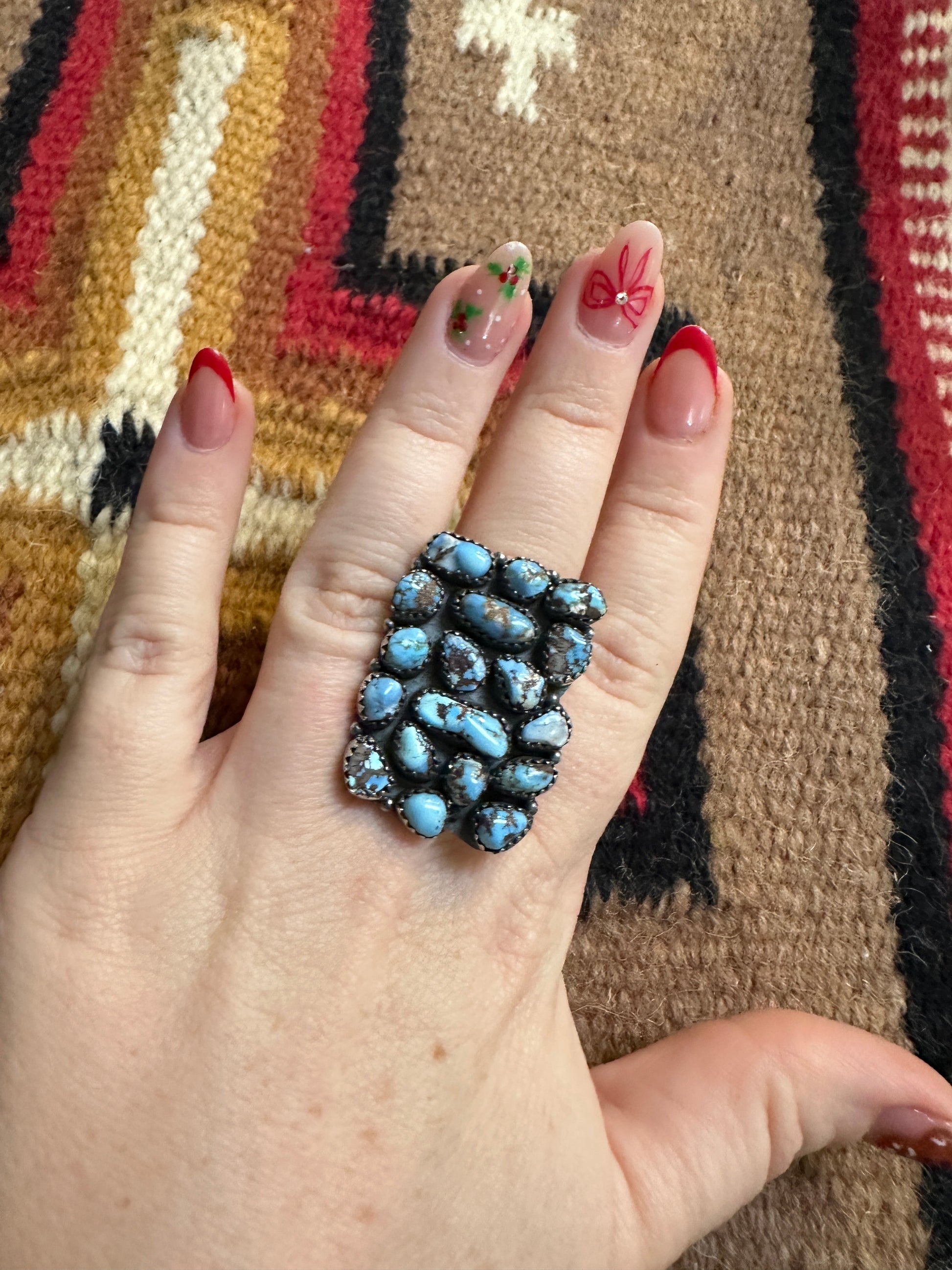 Beautiful Handmade Golden Hills Turquoise And Sterling Silver Adjustable Cluster Ring