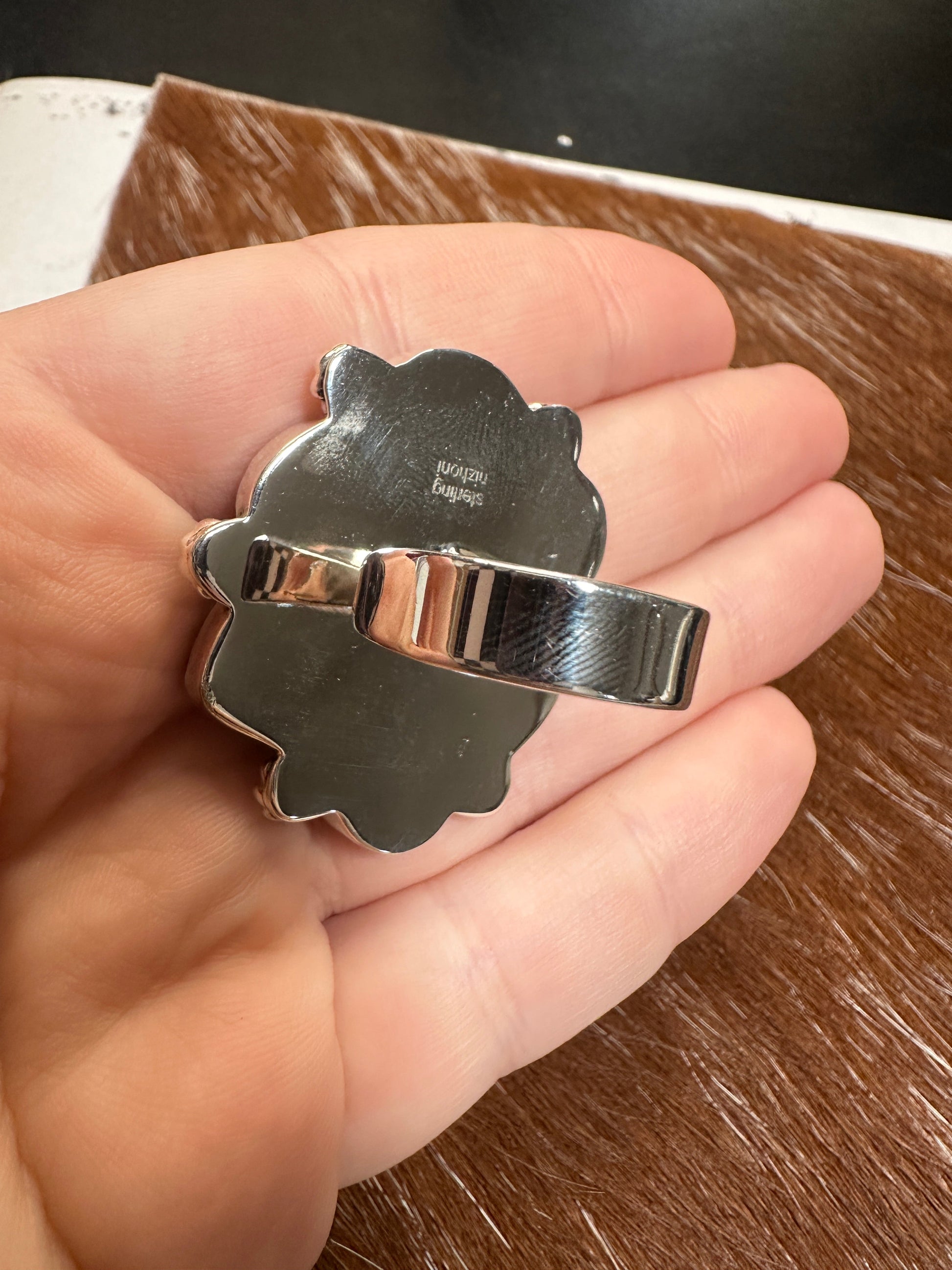 Gorgeous Handmade New Lander Turquoise And Sterling Silver ring.