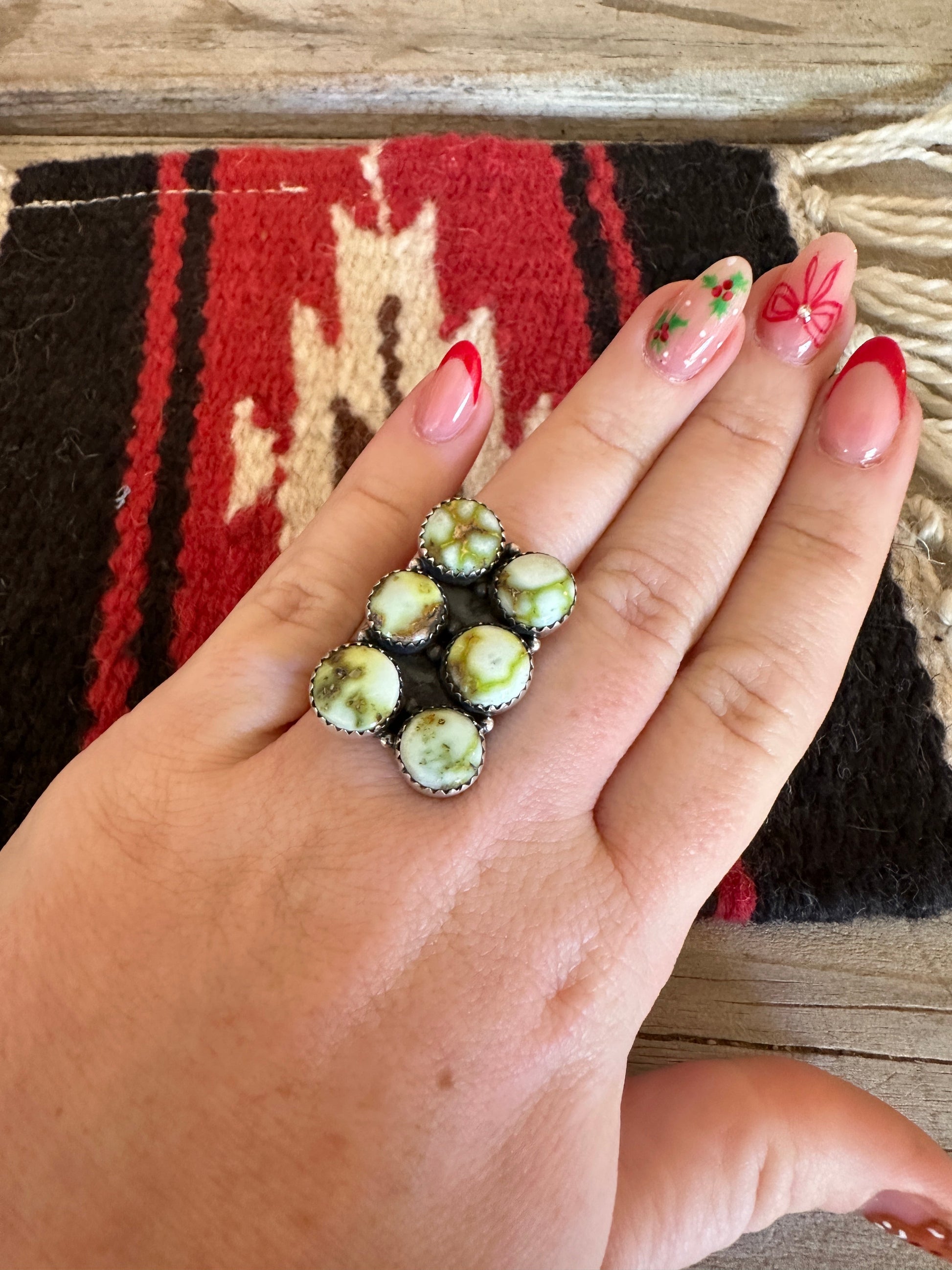 Beautiful Handmade Palomino Turquoise And Sterling Silver Adjustable 6 Stone Ring SMALLER