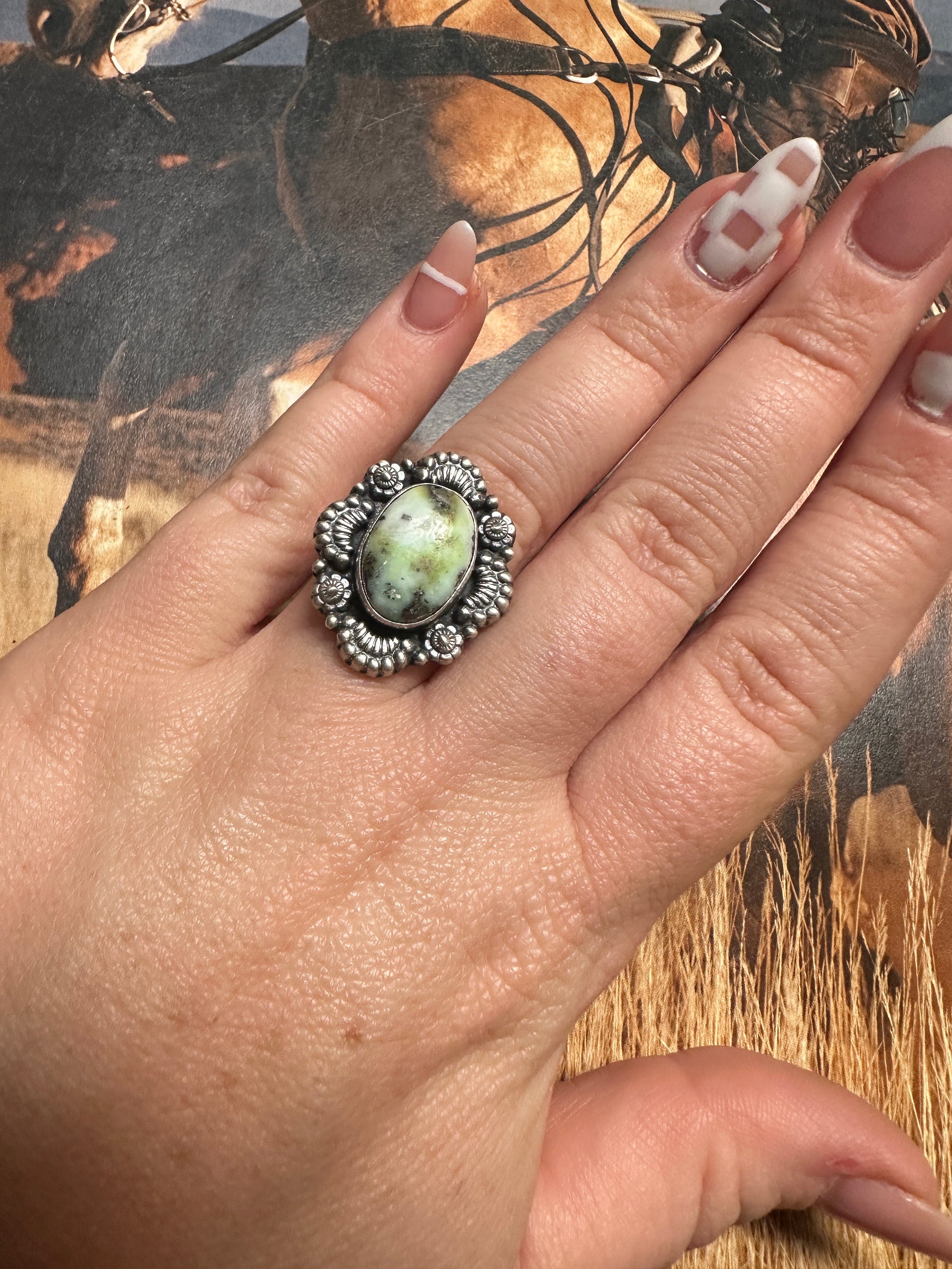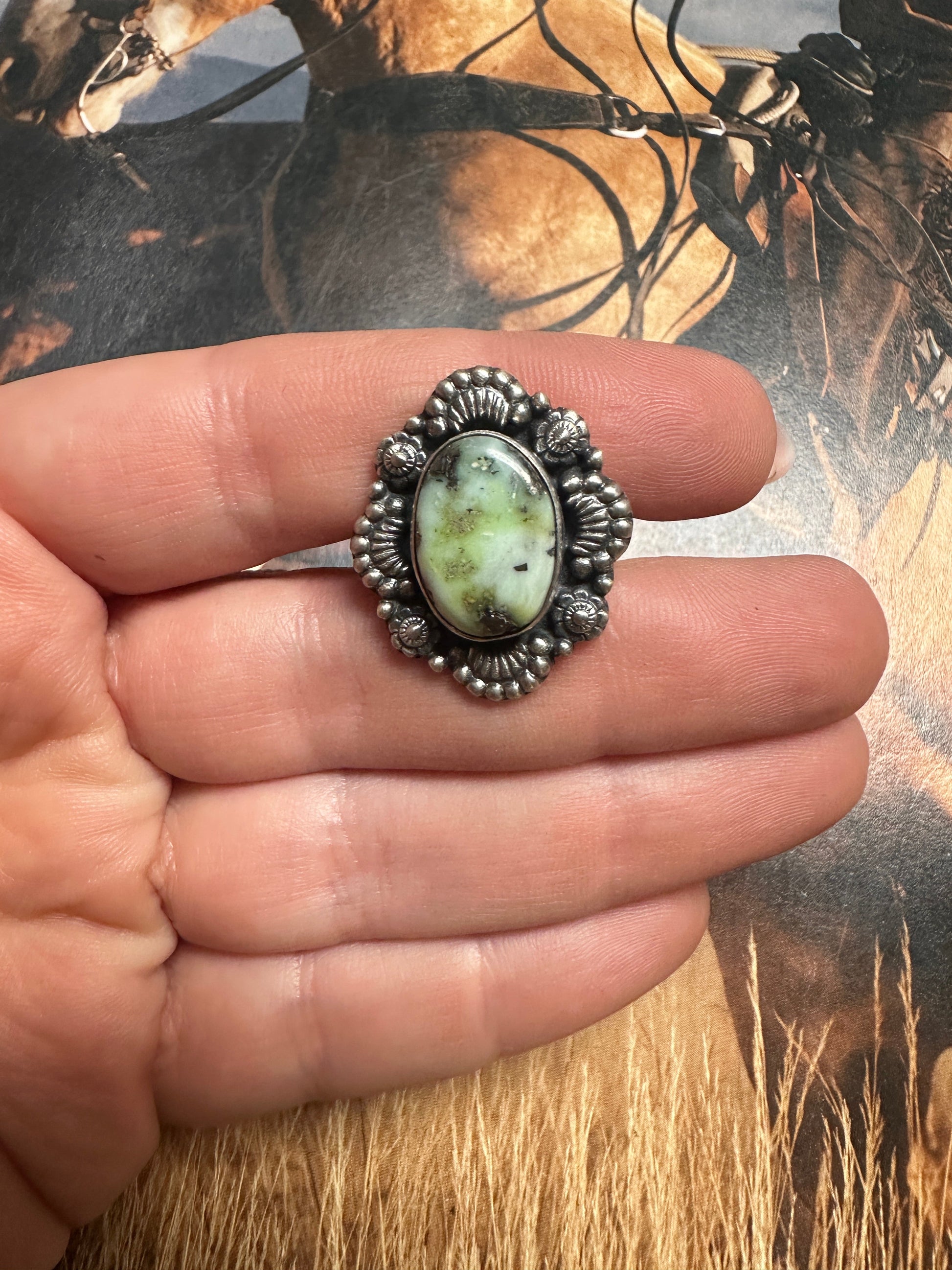 Beautiful Handmade Palomino Turquoise And Sterling Silver Adjustable Single Stone Ring