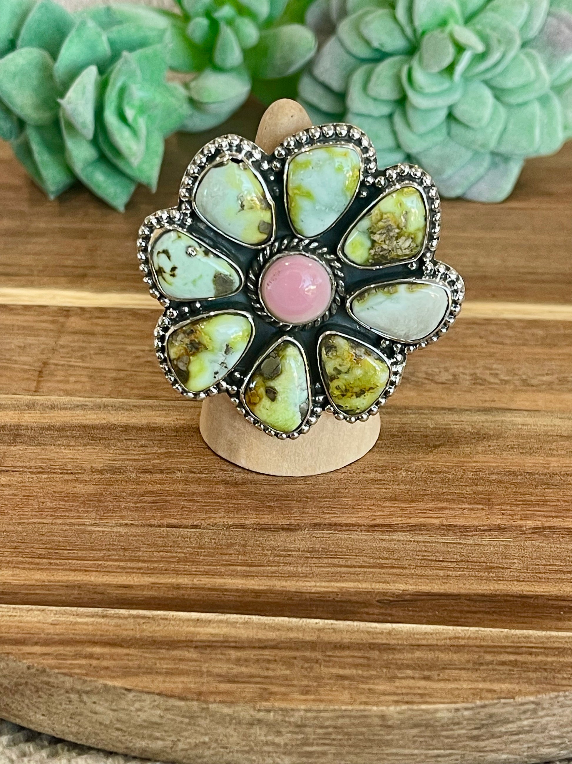 Beautiful Handmade Palomino Turquoise And Sterling Silver Adjustable Ring