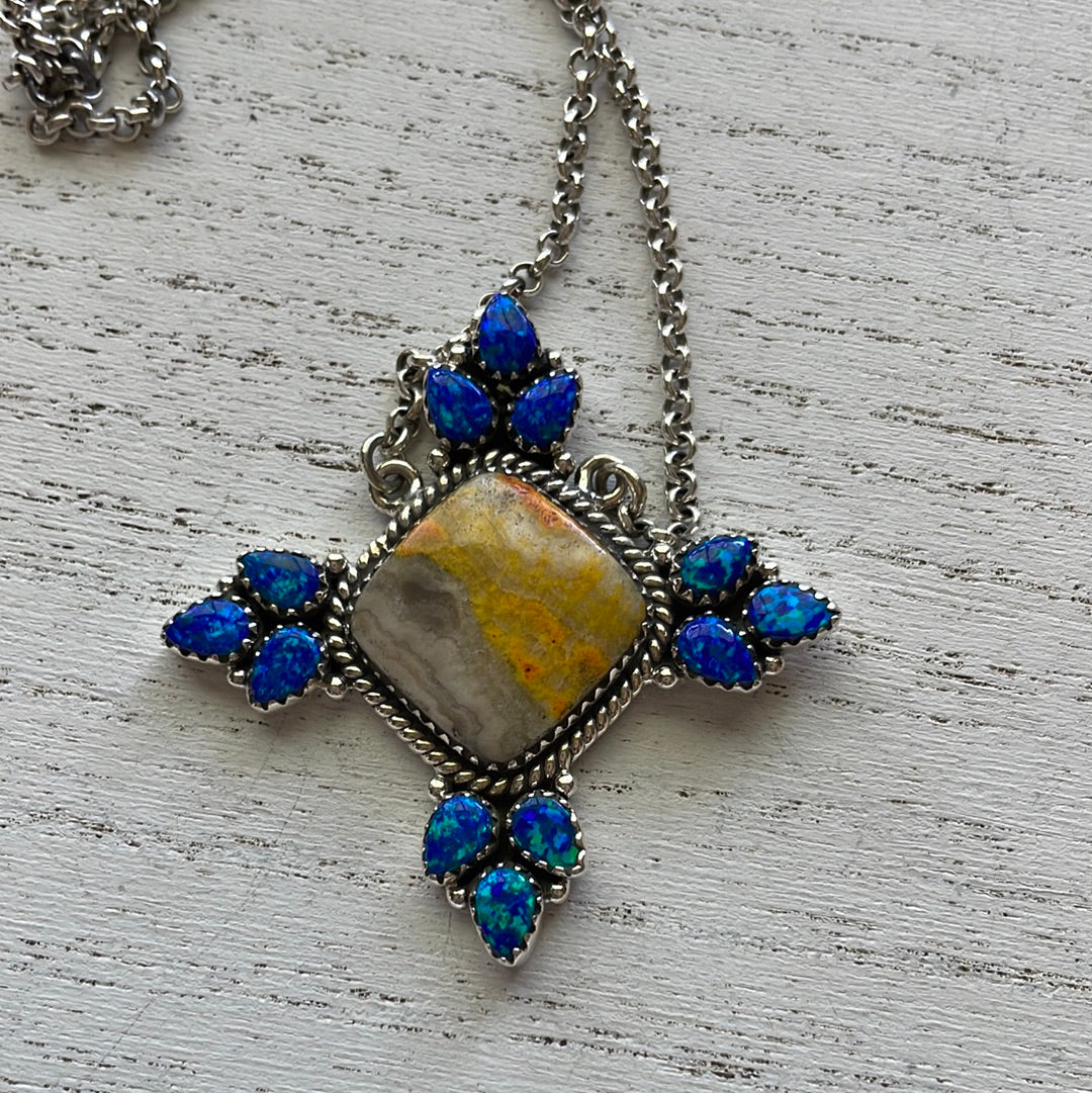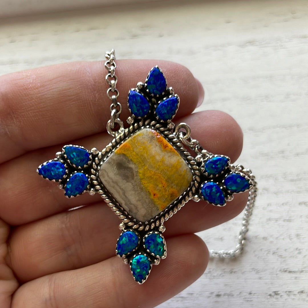 Handmade Sterling Silver, Opal, & Bumblebee Necklace Signed Nizhoni