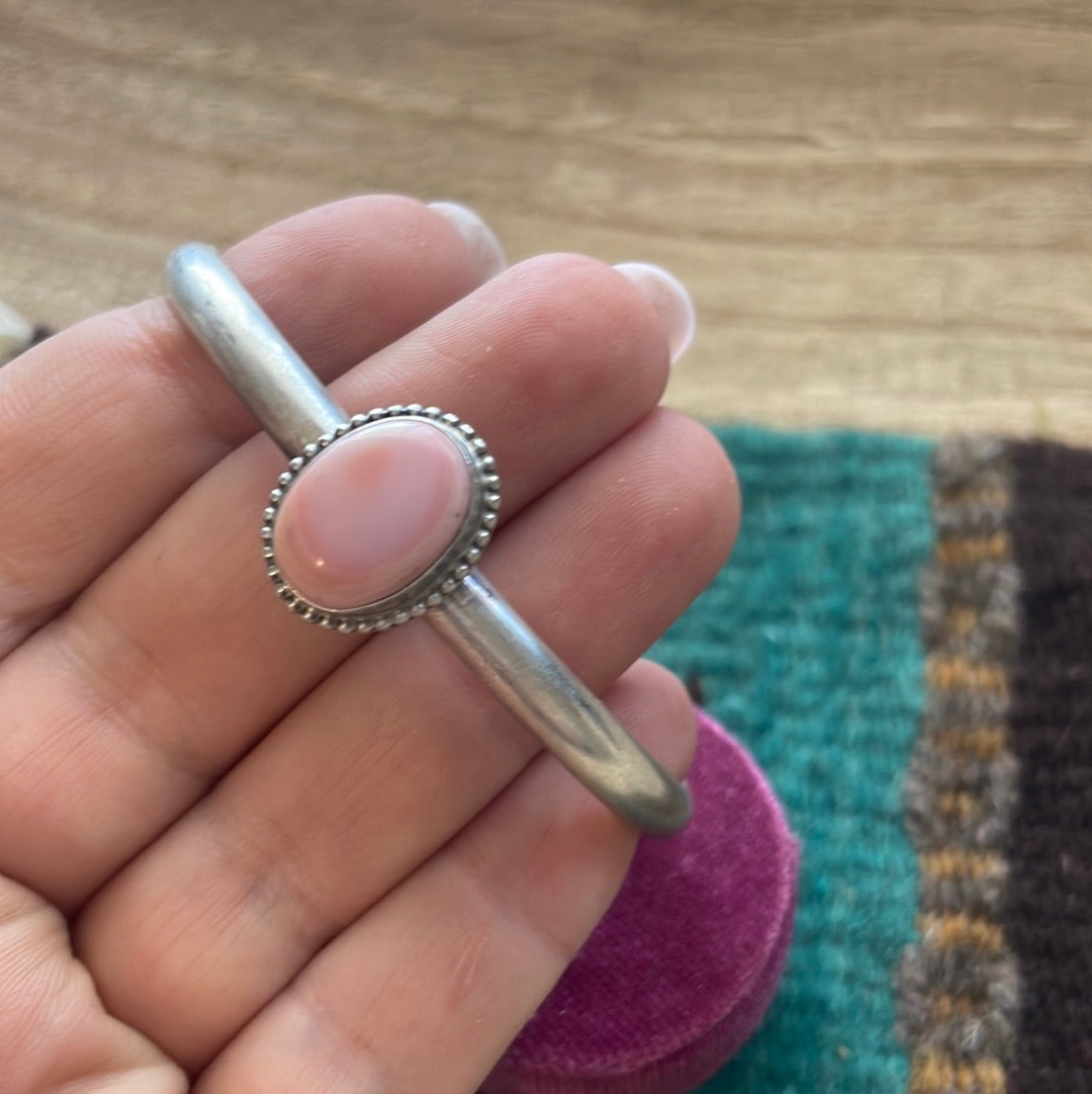 Navajo Pink Conch & Sterling Silver Adjustable Oval Cuff Bracelet Signed