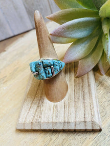Navajo Turquoise & Sterling Silver High Rise Inlay Ring