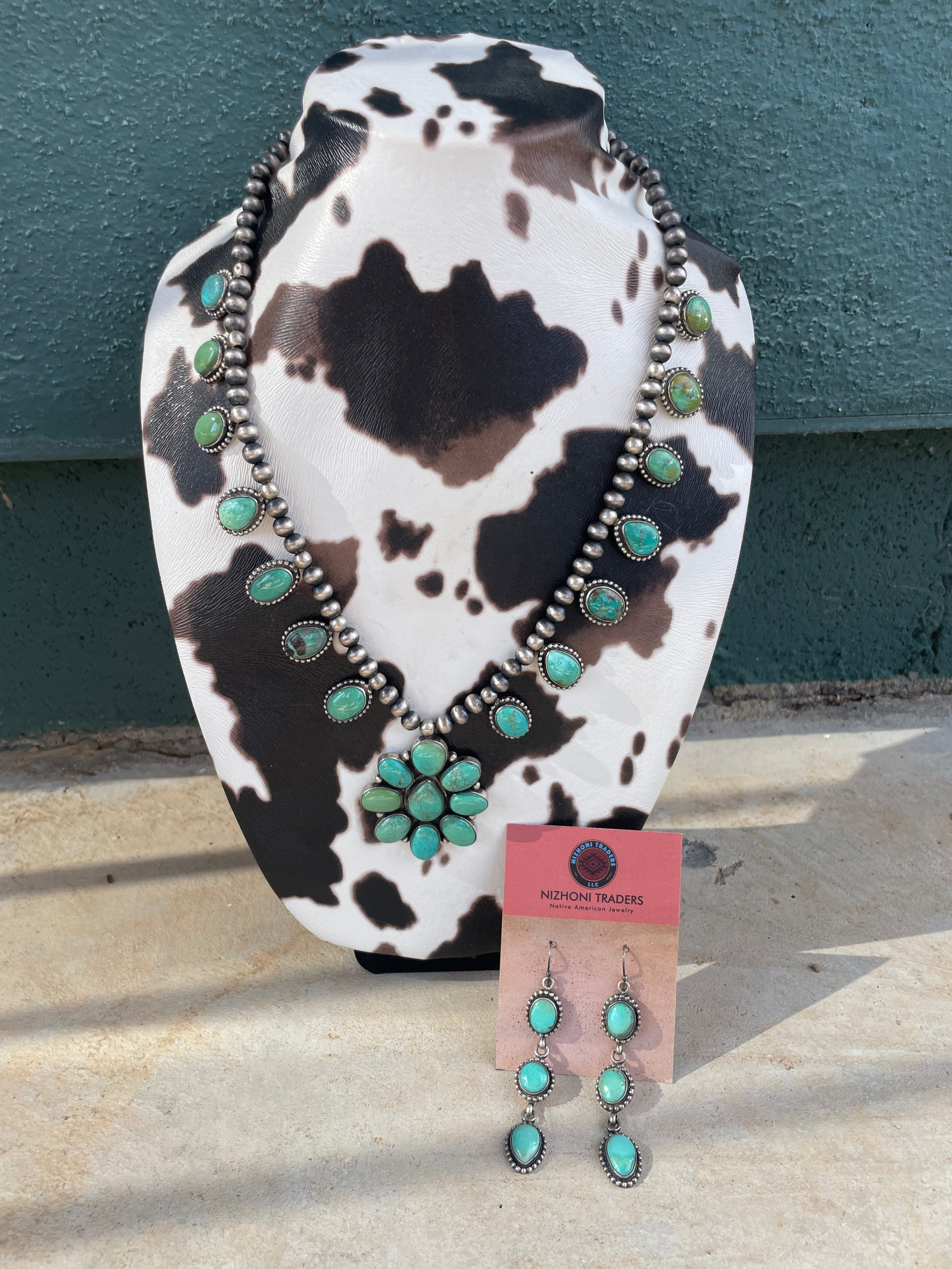“The Rainstorm” Beautiful Navajo Sterling Silver Turquoise Necklace & Earring Set