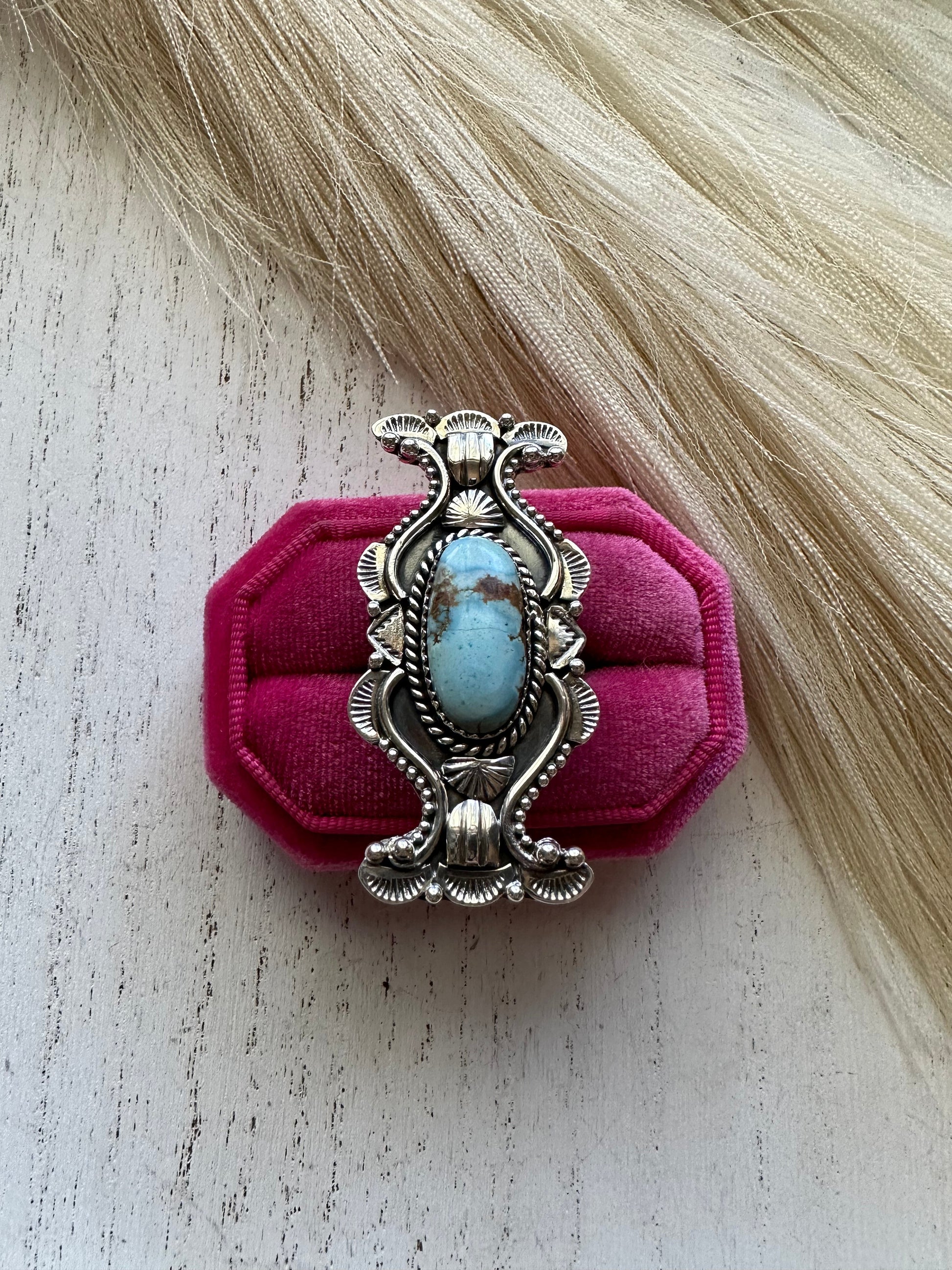 “The Statement Ring” Handmade Sterling Silver & Golden Hills Turquoise Adjustable Ring Signed Nizhoni