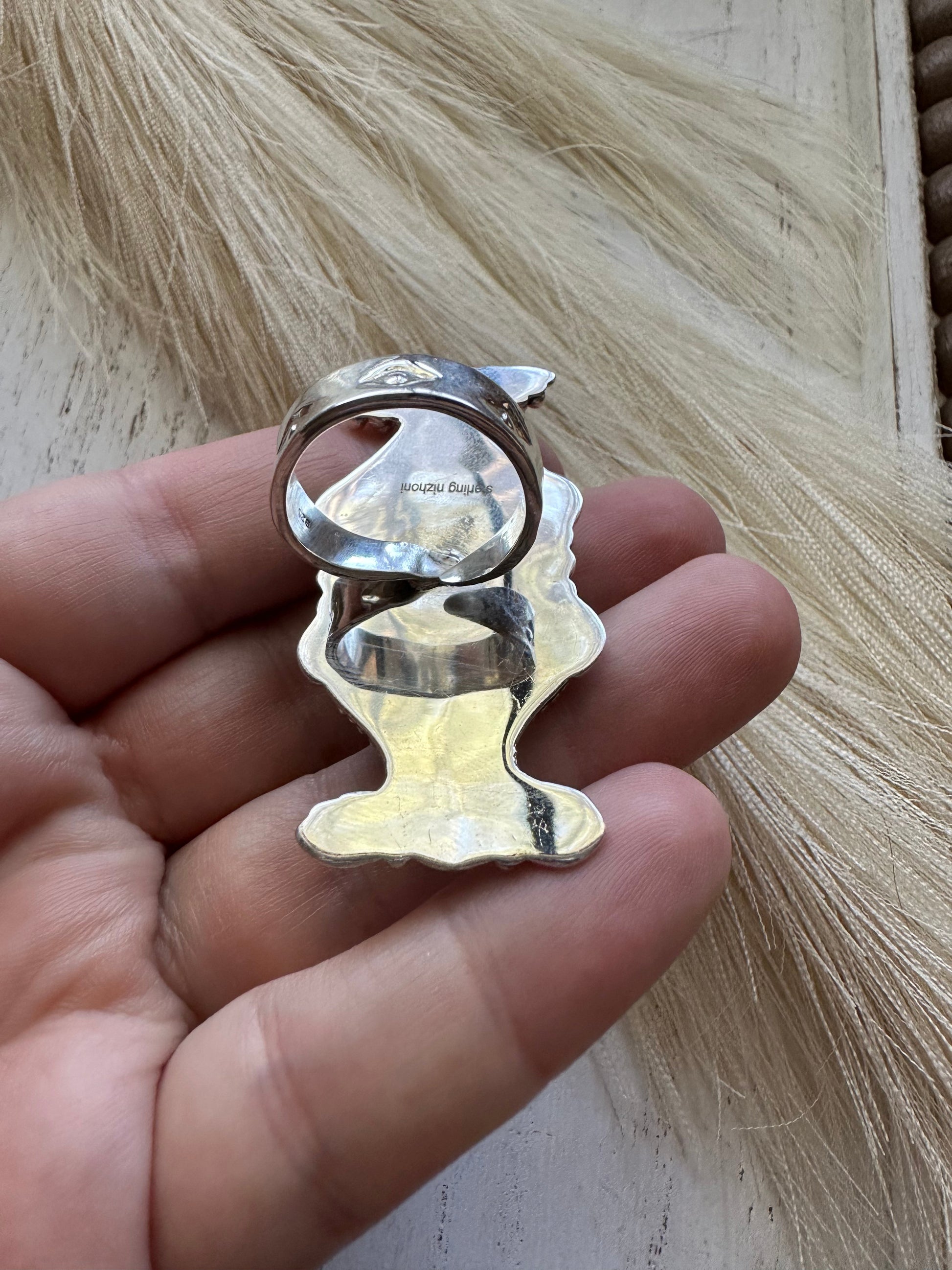 “The Statement Ring” This is a beautiful handmade Golden Hills Turquoise & Sterling Silver Adjustable Ring. Ring measures 2 1/4 inch long and 1 inch wide. Signed Nizhoni and stamped sterling. So beautiful! This listing is for 1 ring only.